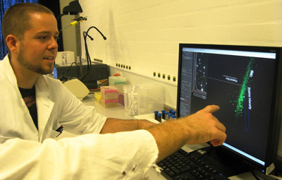 | Christian Engelbrekt discussing his NanoSight NTA data at DTU Chemistry. |