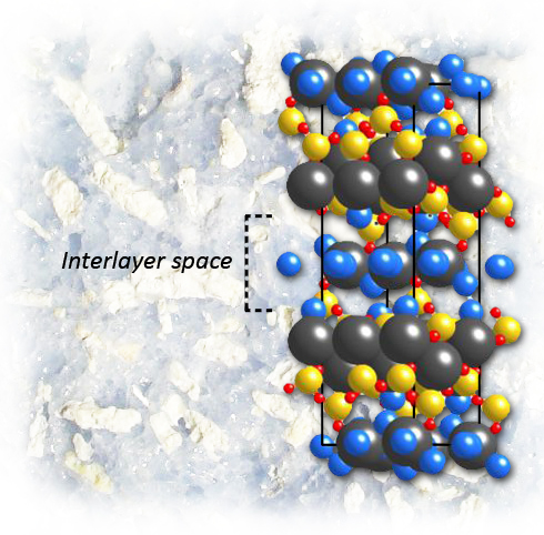 | In nanoscale studies of calcium-silicate-hydrate, a binder critical to the strength and durability of Portland cement, the mineral tobermorite is a perfect stand-in for determining the crystal structure of this extraordinarily complex material. Highly structured layers of calcium and oxygen atoms alternate with “interlayers” of silicon, oxygen, calcium, and water molecules, where disorder may occur and adversely affect the material’s properties. (Crystal structure of 14Å tobermorite as refined by Bonaccorsi et al) |