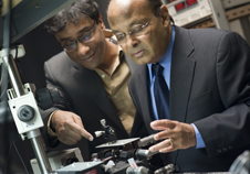 | Swastik Kar, left, and Srinivas Sridhar will collaborate with the Army Research Laboratory to design graphene-based technology for use in low-cost infrared imaging applications for the military. Photo by Mary Knox Merrill. |