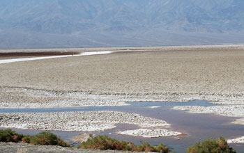 | Badwater Basin, lowest elevation in the Western Hemisphere, at Death Valley National Park.