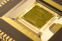 | Semi-conductor chip used by scientists at the National Physcial Laboratory to test the first scalable 3D ion microtrap.