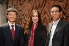 | From left, Tsu-Wei Chou, Amanda Wu and Weibang Lu in Spencer Laboratory Photo by Kathy F. Atkinson |