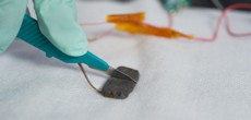 | A researcher slices the self-healing skin with a scalpel. Photo: Linda A. Cicero, Stanford News Service |
