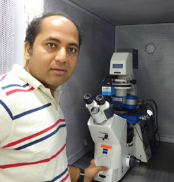 Assistant Professor, Shivprasad Patil, leads the research team. He describes his work and reasons for selecting JPK's NanoWizard® AFM platform and CellHesion™ modules to help speed his research efforts. "For our protein folding research, we modified our JPK system to enable the detection of the change in fluorescence intensity as the protein unfolds. We will measure the autocorrelation of such intensity fluctuations as the protein visits its complex energy landscape when clamped at different loads. We have modified the AFM to excite the tip-sample junction and collect the light from single molecule under a given load. In the future, we plan to perform autocorrelation of fluorescence intensities as the protein fluctuates across various conformations."
