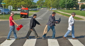 | Click on the image to download a high-resolution version. Searching for stripes: Scientists Simon Billinge, Milinda Abeykoon, Emil Bozin, and John Tranquada are making strides toward uncovering the role of "charge stripes" in superconductivity, the ability of some materials to carry electric current with no energy loss. |