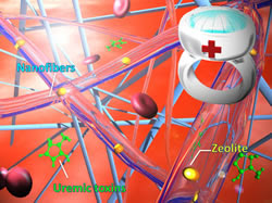 The team made their nanofiber mesh using two components: a blood-compatible primary matrix polymer made from polyethylene-co-vinyl alchohol, or EVOH, and several different forms of zeolites - naturally occurring aluminosilicates. Zeolites have microporous structures capable of adsorbing toxins such as creatinine from blood.