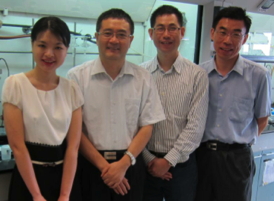 The IBN research team, who invented the new green chemistry method to turn sugar into adipic acid (from left) Dr Ting Lu, Dr Yugen Zhang, Dr Xiukai Li and Dr Guangshun Yi. (Refer to attached PDF for image)