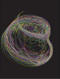 | Continuous monitoring of a quantum system can direct the quantum state along a random path. This three-dimensional map shows how scientists tracked the transition between two qubit states many times to determine the optimal path.