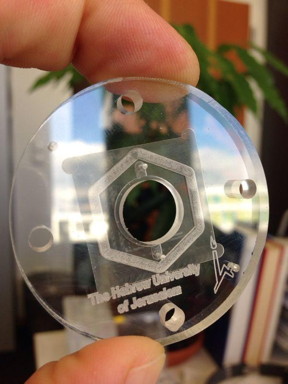 | This image shows the Hebrew University liver-on-chip device. CREDIT: Photo credit: Yaakov Nahmias / Hebrew University |