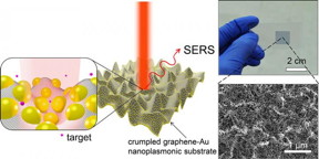 "I believe that this work will benefit researchers in the area of surface plasmonics by providing a new strategy/design for enhancing the surface enhanced Raman spectroscopy (SERS) detection limit," explained SungWoo Nam, an assistant professor of mechanical science and engineering at Illinois. "This mechanical self-assembly strategy will enable a new class of 3D crumpled graphene?gold (Au) nanostructures. The enhanced limit of detection will allow biomedical and environment monitoring of important molecules at high sensitivity by SERS."