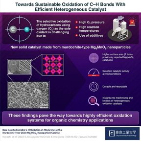 The selective oxidation of C–H bonds using oxygen has become a much simpler and more sustainable endeavor, thanks to a novel manganese (Mn)-based catalyst developed by scientists at Tokyo Institute of Technology (Tokyo Tech). Consisting of reusable Mg6MnO8 nanoparticles with unprecedented surface area, their catalyst enables the desired oxidative reactions to occur at mild temperature and pressure conditions without the need for toxic additives, opening doors to more energy-efficient and environmentally friendly chemistry applications.