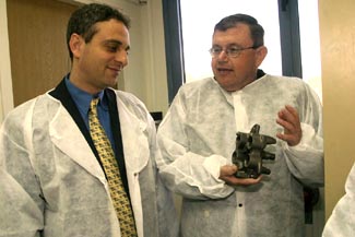 The Israeli Minister of Science and Technology, Mr. Eliezer Zandberg (left) and ApNano Materials' CEO and Co-Founder, Dr. Menachem Genut Click to enlarge |
