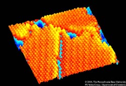 "We focus on gaining atomic-scale understanding and control of materials properties. We do this by exploring, probing, and manipulating interactions and dynamics at surfaces and interfaces. We use and extend scanning tunneling microscopy to explore the surface structures, motion, and perturbations due to adsorbed atoms and molecules and due to surface features such as substrate steps and defects. We locate, study, and try to exploit the regimes in which our intuition based on macroscopic measurements breaks down. We are exploring the phenomena to be used, the ground rules, and the ultimate limits in nanometer-scale electronics and storage. Our microscopes serve not only as probes, but also allow us to manipulate matter on the atomic scale. We can thus interrogate the properties of uniquely configured atomic-scale structures. This has required the development of new tools with atomic-scale views of the surface. One new effort in our group looks at how we can bridge the gap between conventional optical microscopies and scanning probe microscopies."