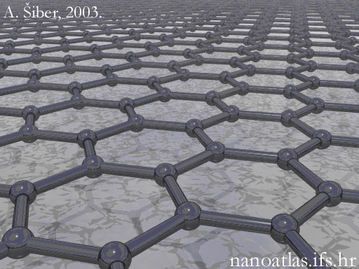 Atomic structure of graphene, a planar structure in graphite. |
