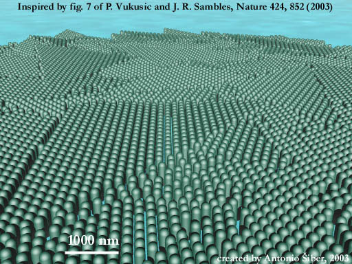 Nanometric two-dimensional structures found in eyes of some insects (natural photonic crystal). |