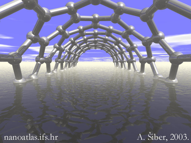 Artistic view of a zig-zag carbon-nanotube-like structure submersed in the sea. Reminiscent of the might of the constructions of Mother Nature. |