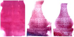 The "vase" was created using a technique called evaporation induced self-assembly. The one on the left was created by pouring a colloid/wetting agent on a surface. After the surface dried (about 20 hours), water was poured on the surface to remove excess pigment (middle figure). The middle figure suggested a vase. And the final image shows how easily it was shaped into a vase on a potters wheel. (see Nature materials July 2003 issue.)