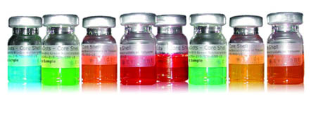 EviDots semiconductor nanocrystals from Evident are available in an unprecedented range of compositions and colors. These nanomaterials are precision engineered by controlling the size, wavelength, absorption resonance, and semiconductor bandgap. The materials are very stable, are of high quality, are consistent from batch to batch, and have very narrow color emissions. These unique properties enable product developers to enhance and expand nanotechnology applications in optics, photonics, nanoelectronics and biology.