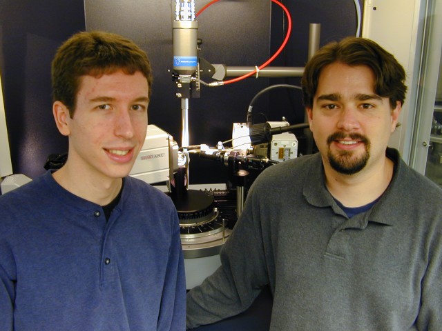 Johnson, a UO assistant professor of chemistry, supervises the work of W. Jake Vickaryous (pronounced like the word "vicarious"), the UO doctoral degree candidate in chemistry who synthesized the molecule and is the lead author for the Angewandte Chemie article. Rainer Herges, the article's third co-author, is a professor at the Institut for Organische Chemie in Kiel, Germany, who produced the computer modeling studies for the project.