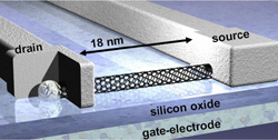 Researchers construct world's smallest nanotube transistor, with a channel length of only 18 nm