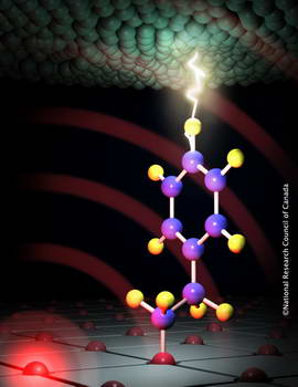 Molecular electronics – using molecules in the construction of electronic circuitry – just took a significant step closer to reality. Principal investigator Dr. Robert Wolkow, postdoctoral fellow Dr. Paul Piva and a team of researchers from the National Institute for Nanotechnology of the National Research Council and University of Alberta have designed and tested a new concept for a single molecule transistor. They have shown, for the first time, that a single charged atom on a silicon surface can regulate the conductivity of a nearby molecule. Their discovery is published in the June 2, 2005 edition of the scientific journal Nature.
