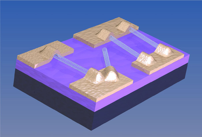 The Penn researchers found a purification scheme for the nanotubes by heating them in moist air with a gentle acid treatment and then using magnetic fields to separate the nanotubes from the impurities. They deposit the nanotubes by dipping a chip covered with a glue-like substance into the nanotube solution, and then they wash off the excess glue and whatever solvents that remain.