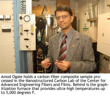The Department of Energy (DoE) has awarded Clemson University chemical engineering professor Amod Ogale, deputy director of the Center for Advanced Engineering Fibers and Films (CAEFF), a $450,000 grant to research carbon fibers embedded into a carbon matrix that do not melt in extreme temperatures for potential use in Gen IV power generators. About 20 percent of electricity produced in the United States is from nuclear sources.