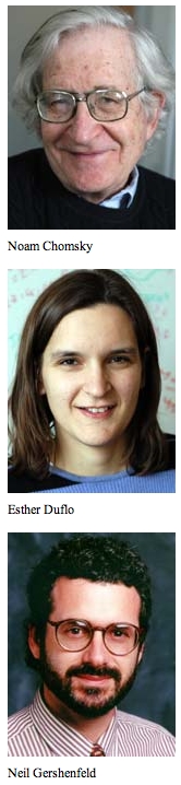 Three of MIT's thinkers--Noam Chomsky, Esther Duflo and Neil Gershenfeld--have been named among 100 other "global intellectuals" by Prospect Magazine.