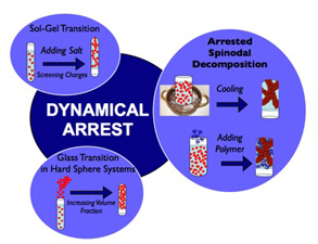 | Solid-like materials can be obtained via a variety of different arrest mechanisms. In the case of medium strength attractive particles, gels can form via an arrested spinodal decomposition process. |