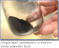 Single-wall carbon nanotubes exhibit unique properties due to their unusual structure. They consist of a hollow cylinder of carbon ~ 1nm in diameter, up to 1,000 times as long as it is wide. This structure has remarkable optical and electronic properties, tremendous strength and flexibility, and high thermal and chemical stability. As a result, carbon nanotubes are expected to have dramatic impact on several industries, including displays, electronics, health care and composites.