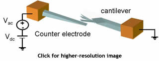 "The current way of sensing involves an optical method that uses a relatively bulky and expensive laser beam that doesn't translate well to use in nano-scale cantilevers. Our method is fully electrical and uses a small AC voltage to vibrate the cantilever and simple electronics to detect any changes in the vibration caused by gaseous chemical or biological agents," Rao said. "This method enables the development of handheld devices that would beep or flash as they read gas and chemical levels on site."