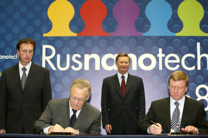Russian corporation of nanotechnologies signed agreements on cooperation with the leading Russian scientific institutions: Russian Academy of Science (RAS) and Moscow State University (MSU). The documents were signed by RUSNANO Director General Anatoly Chubais, president of the Russian Academy of science Yuri Osipov and MSU rector Viktor Sadovnichiy.