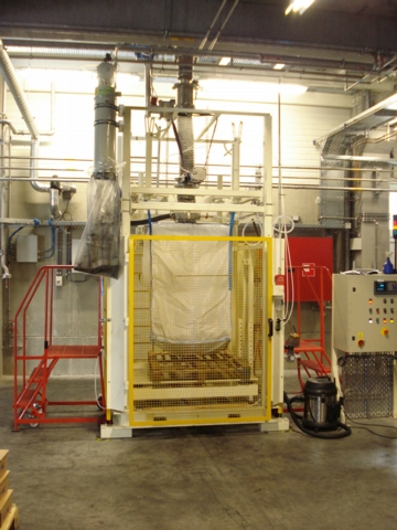 Traditionally, for most industrial applications, we offer Big Bag Fillers with weighing platforms using weigh-scales or load-cells, typically achieving accuracies of +/- 1 kg. To meet the Nanocyl requirement of a weighing resolution accuracy of +/- 20 grammes, our engineers decided to adopt the ‘hang-weighing' principle on this occasion and with total success. This meant that the highly sensitive load cells could be mounted high up in the structure of the filler out of harms way. Not only does the ‘Spirofil' Big Bag Filler weigh the contents of Big Bags - it is so accurate that it also used to fill 2 kg bags too! Accuracy is particularly critical when you are handling such a high value product.