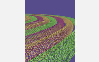 | Above is a visualization of the structure of carbon nanotubes. Double-sided carbon nanotubes are highly prized for their use in solar cells and other applications, but until now, creating a supply of just double-sided carbon nanotubes -- instead of a mix of single- and multi-sided ones--was a challenge. A team of researchers at Northwestern University has announced a breakthrough technique that allows the double-sided tubes to be efficiently separated from the other types.
