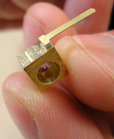 The laser used in the Princeton study is a special type called a quantum cascade laser. Built at Princeton University's nanofabrication facility, the device is about one-tenth as thick as a human hair and 3 millimeters long. Despite its tiny size, it is made of hundreds of layers of different semiconductor materials. Each layer is only a few atoms thick. In this device, electrons "cascade" down through the layers as they lose energy and give off synchronized photons.
