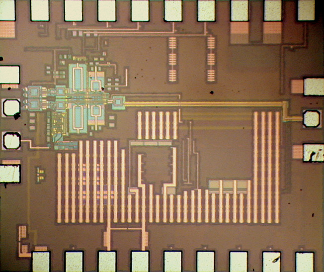 | Pictures of IMEC’s 45nm 60GHz ICs: receiver front-end (left), PLL (middle) and power amplifier (right). |