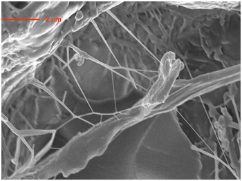 At the interface of the functionalized nanotubes and the epoxy, the epoxy starts to craze, which is a highly unusual behavior for this particular type of composite, Koratkar said. The epoxy deforms, becomes more fluid, and creates connective fibers up to 10 microns in length and with a diameter between 100 nanometers and 1,000 nanometers.