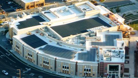 Solyndra's PV system design allows maximum coverage and easy installation on commercial low-slope rooftops. There is no need for roof-penetrating mounts or ballast to hold panels in place and, as a result, the installation took less than 4 days. According to Dave Corkill, Owner of Livermore Cinemas, "No other system could offset as much power - the installation was over before we knew it."