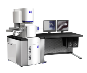 The MERLIN FE-SEM overcomes the conflict between image resolution and analytical capability. The core of MERLIN is the enhanced GEMINI II column which, with its double condenser system, achieves an image resolution of 0.8 nanometers. A sample current of up to 300 nanoamperes is available for analytical purposes such as energy and wavelength dispersive X-ray spectroscopy (EDS and WDS), diffraction analysis of backscattered electrons (EBSD) or the generation of cathodoluminescence.