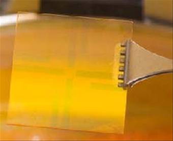 According to 2nd Lt. Christopher A. Vaiana of the Directorate's Nonmetallic Materials Division, AFRL/RX provided guidance and funding to develop a special "conductive ink" that can be used to make printed organic photovoltaic solar cell panels on very thin, flexible surfaces using ink-jet printing. This new technology, called Plexcore®, developed and manufactured by Plextronics, allows solar cells to form-fit soldiers' uniforms. It can also be used to print solar panels onto thin films in military tents, Lieutenant Vaiana said.