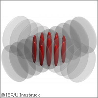 'By increasing the interaction energy between the atoms (attraction interaction), the atoms start coming together and the structure quickly decays,' explained Dr Naegerl. This is called the 'Bosenova effect'. When the interaction energy is minimised, the atoms are able to repel instead of attract each other; this allows them to align vertically and regularly along a one-dimensional structure. The resulting system is stable.