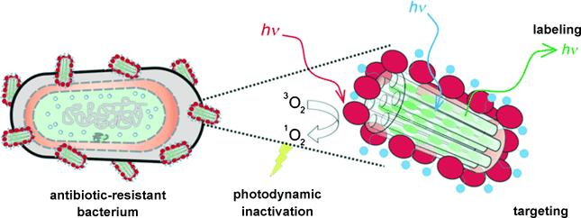 The increasing antibiotic resistance of bacteria is a serious problem of our time. Hospital germs in particular have developed strains against which practically every current antibiotic is ineffective. In the battle against resistant microbes, a team at the University of Münster (Germany) is now pursuing a new approach involving photodynamic therapy, which is a technique that is already being used in the treatment of certain forms of cancer and macular degeneration. Upon irradiation with light, an agent produces oxygen in a special activated form that is highly toxic to cells. As the researchers led by Cristian A. Strassert and Luisa De Cola report in the journal Angewandte Chemie, they would like to use specially developed nanomaterials that bind specifically to bacterial cells to mark them and kill them under irradiation.