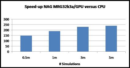 The latest release of NAG's code for GPUs contains routines for Monte Carlo simulations—Quasi and Pseudo Random Number Generators, Brownian bridge, and associated statistical distributions. For more details, see www.nag.com/numeric/GPUs.