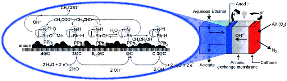 The concept of converting renewable raw materials so cleverly that the same process simultaneously produces both energy and industrially desirable chemicals has been high on the wish-list for those who seek environmentally friendly and resource-saving chemistry. The process should also not release any carbon dioxide. In the journal Angewandte Chemie, Hansjörg Grützmacher, Francesco Vizza, and Claudio Bianchini and their co-workers from the ETH in Zürich (Switzerland) and the Consiglio Nazionale delle Ricerche (CNR) in Sesto Fiorentino (Italy) have now introduced a new kind of fuel cell: an organometallic fuel cell that efficiently converts alcohols and sugars into carboxylic acids.