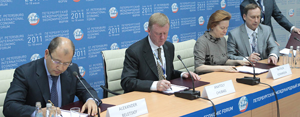 RUSNANO CEO Anatoly Chubais, Khanty-Mansiysk Governor Natalya Komarova, Corporation Ural Industrial — Ural Polar General Director Alexander Beletskiy, and Khanty-Mansiysk Bank Deputy Chairman of the Management Board Alexander Smirnov, signed the agreement on behalf of their organizations.