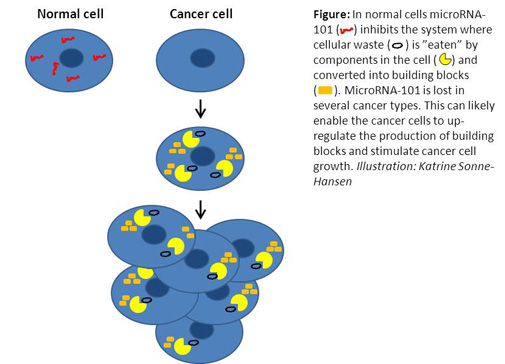 The molecule that the researchers have studied is called microRNA-101 and is found naturally in our cells. In cancer research, there is currently a large focus on both autophagy and microRNA molecules, which can control our genes and both mechanisms are known to play an important role for cancer development.