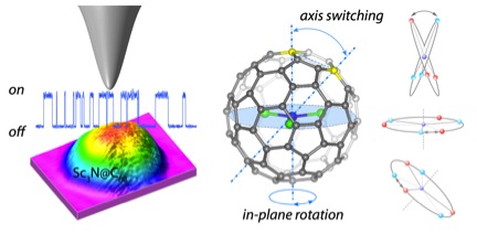 The switch was discovered by experimenting with the rotation of a triangular cluster of three metal atoms held together by a nitrogen atom, which is enclosed entirely within a cage made up entirely of carbon atoms. Petek and his team found that the metal clusters encapsulated within a hollow carbon cage could rotate between several structures under the stimulation of electrons. This rotation changes the molecule's ability to conduct an electric current, thereby switching among multiple logic states without changing the spherical shape of the carbon cage. Petek says this concept also protects the molecule so it can function without influence from outside chemicals.