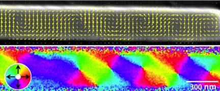 An international collaboration led by the NIST Center for Nanoscale Science and Technology has used scanning electron microscopy with polarization analysis (SEMPA) to acquire images of the magnetic structure inside patterned nickel-palladium (NiPd) thin film nanostructures, revealing peculiar magnetization textures that can affect the behavior of these ferromagnetic alloys in experimental applications.*