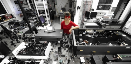 | Joanna Oracz (FUW) in her optical lab. Source: Grzegorz Krzyżewski/FUW |