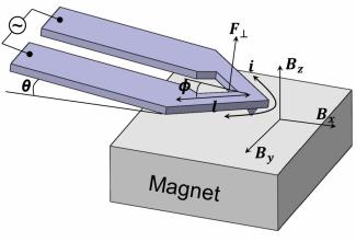 "This new technique lets us measure temperature and frequency-dependent properties of materials rapidly over a wide bandwidth," noted William King, the College of Engineering Bliss Professor in the Department of Mechanical Science and Engineering at Illinois, who led the research. The technique works by flowing a current around the U-shaped arms of a self-heating atomic force microscope (AFM) cantilever and interacting that current with a magnetic field. The magnetic field allows the tip-sample force to be modulated right near the tip of the AFM.